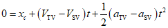 Формула для ETTC является производной от предположения, что относительное ускорение между СВ и ТВ остается постоянным. Используя закон прямолинейного движения тела, позиция может быть выражена как функция времени: