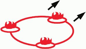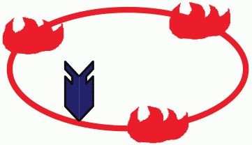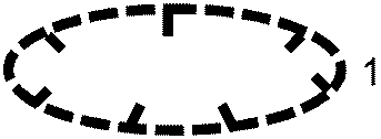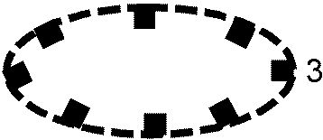 Район разрушений, образовавшихся от ядерного взрыва противника, с указанием границ: сплошных разрушений (внутренняя окружность), сплошных завалов в лесах и населенных пунктах (средняя), слабых разрушений (внешняя); пунктиром или заштрихованная часть окружности - зона нейтронного воздействия на открыто расположенный личный состав | ![]() | + | + | + | Площадной | 1 Класс объекта 2 Тип объекта | 000043 | |