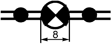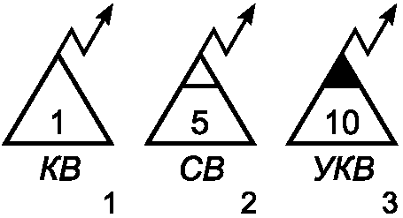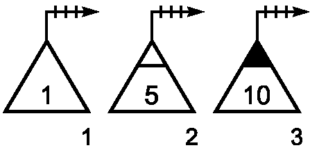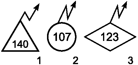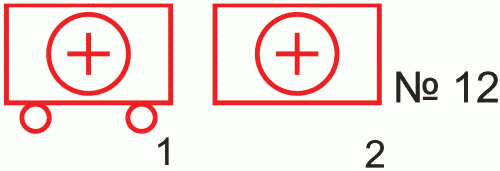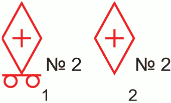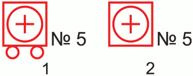 Узел правительственной связи - общее обозначение (без раскрытия состава): 1 - полевой; 2 - стационарный; 3 - стационарный защищенный; 4 - опорный; 5 - вспомогательный. Принадлежность узла связи обозначается флагом соответствующего пункта управления (штаба) или условным номером | ![]() | + | Точечный | 1 Класс объекта 2 Тип объекта | 000500 | |||