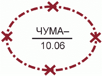 Район проведения карантинных мероприятий с указанием вида заболевания (чума), числа заболевших (250) и даты обнаружения заболевания | ![]() | + | + | Площадный | 1 Площадь зоны 2 Количество людей 3 Количество зданий 4 Относительная высота | 000027 | ||