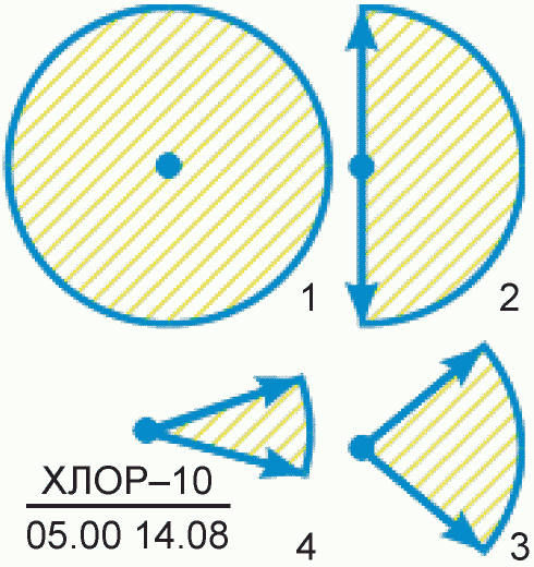 Зона возможного заражения АХОВ (по прогнозу) ограничена окружностью, полуокружностью или сектором, имеющим угловые размеры 1 при скорости ветра меньше 0,5 м/с зона имеет вид окружности; 2 при скорости ветра 0,6 - 1 м/с зона имеет вид полуокружности; 3 при скорости ветра 1,1 - 2 м/с зона имеет вид сектора ;4 при скорости ветра более 2 м/с зона имеет вид сектора ![]() | ![]() | + | + | Площадный | 1 Площадь зоны 2 Количество людей 3 Количество зданий 4 Относительная высота | 000029 | ||