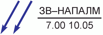 Удар авиации противника с применением зажигательного оружия с указанием: ЗВ - звено авиации, НАПАЛМ - тип зажигательного вещества; в знаменателе - время и дата применения | ![]() | + | + | Точечный | 1 Площадь зоны 2 Количество людей 3 Количество зданий 4 Относительная высота | 000024 | ||