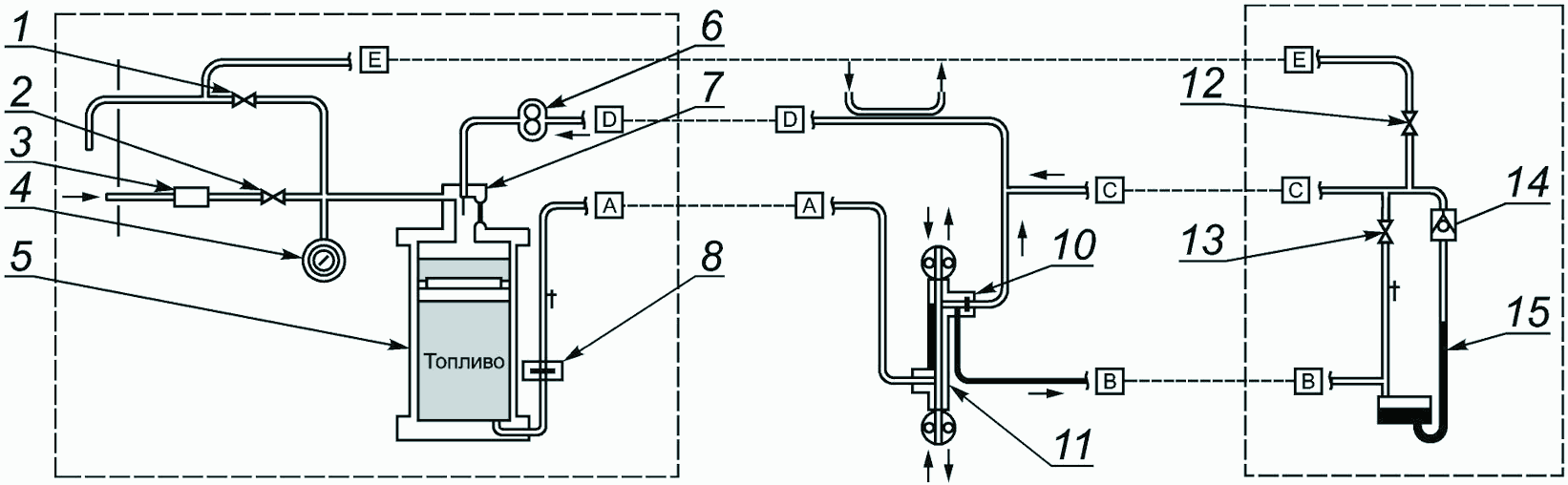 Топливо прокачивают по поверхности нагревателя с заданной постоянной объемной скоростью, затем оно поступает на испытательный фильтр из нержавеющей стали, улавливающий продукты разложения топлива.