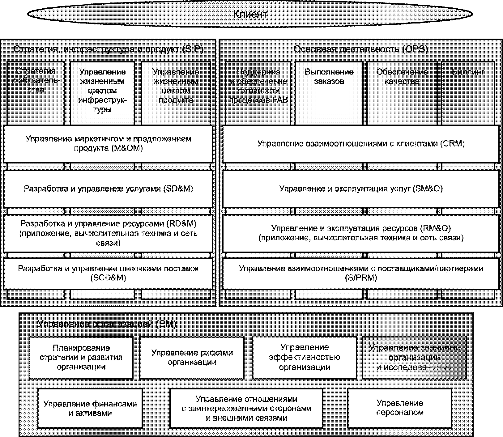 Общая структура бизнес-процессов eTOM, стандартизированная в