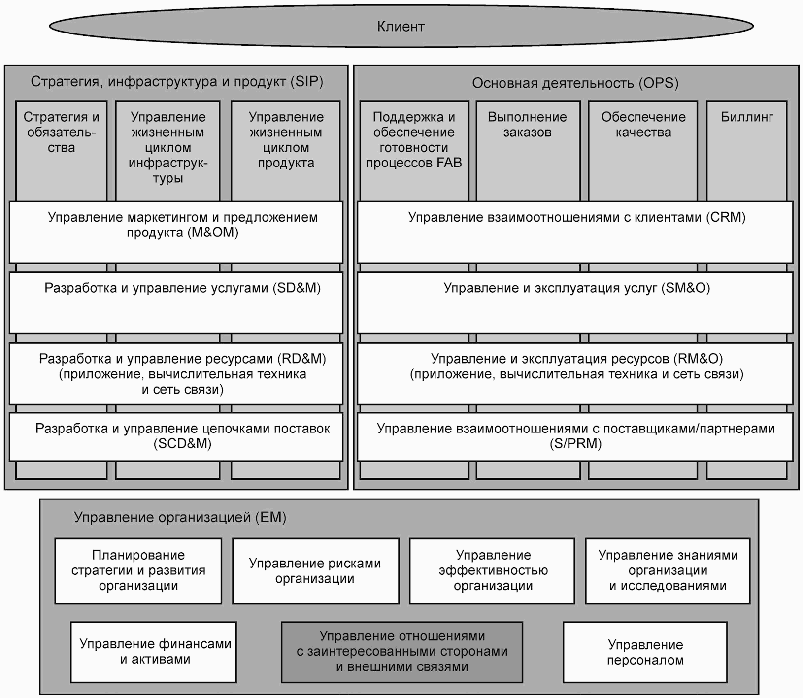 Общая структура бизнес-процессов eTOM, стандартизированная в