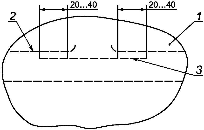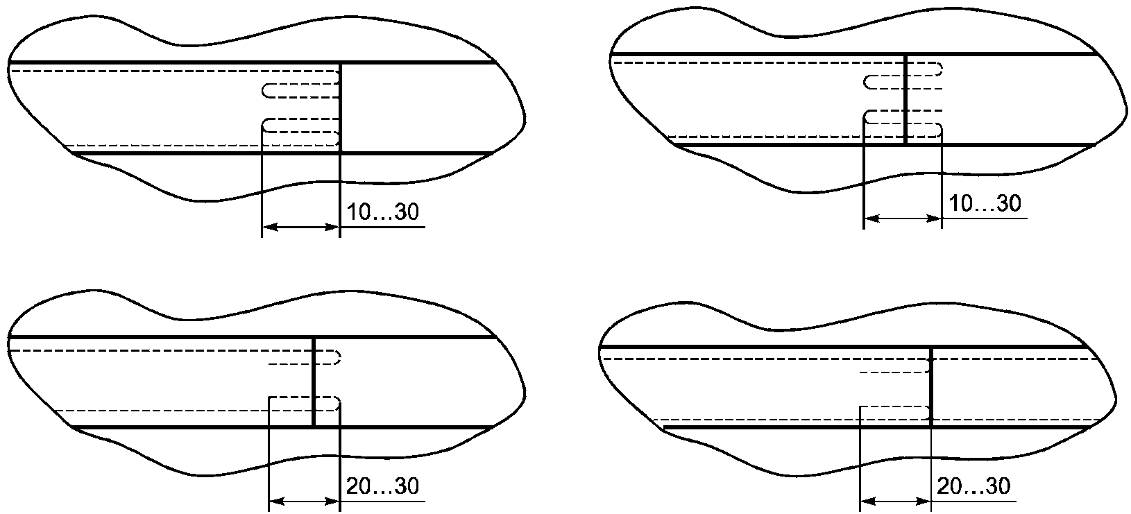 10.3.6.3 Новая строчка должна выполняться с перекрытием на 20 - 40 мм в обе стороны от поврежденного участка строчки.