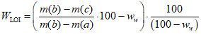 где WLOI - потери массы при прокаливании пробы в процентах от сухого остатка или безводной пробы;
