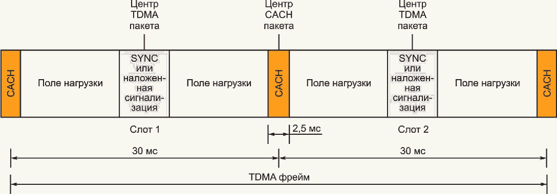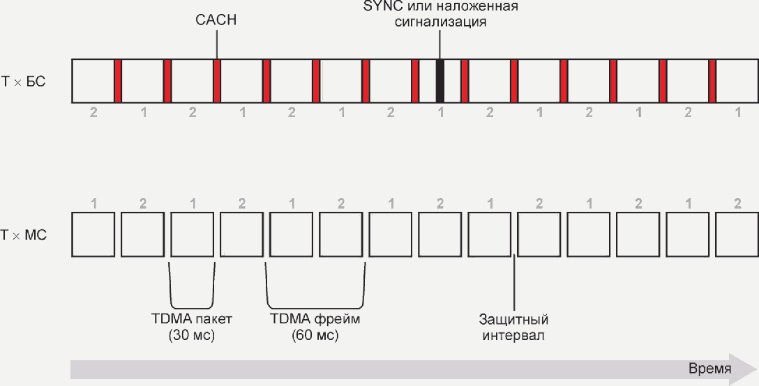 При независимых TDMA МС передачах с разделением канала для одновременной работы требуется, чтобы в пределах широкой зоны охвата все МС передавали один и тот же слот временной синхронизации. При этом минимизируются взаимные помехи между слотами. Одна из МС назначается в системе лидером (ведущей) и устанавливает синхронизацию канальных слотов. МС делится своей синхроинформацией режима прямой связи, распространяя эту информацию до границ зоны охвата. Детали процедуры синхронизации содержатся в [