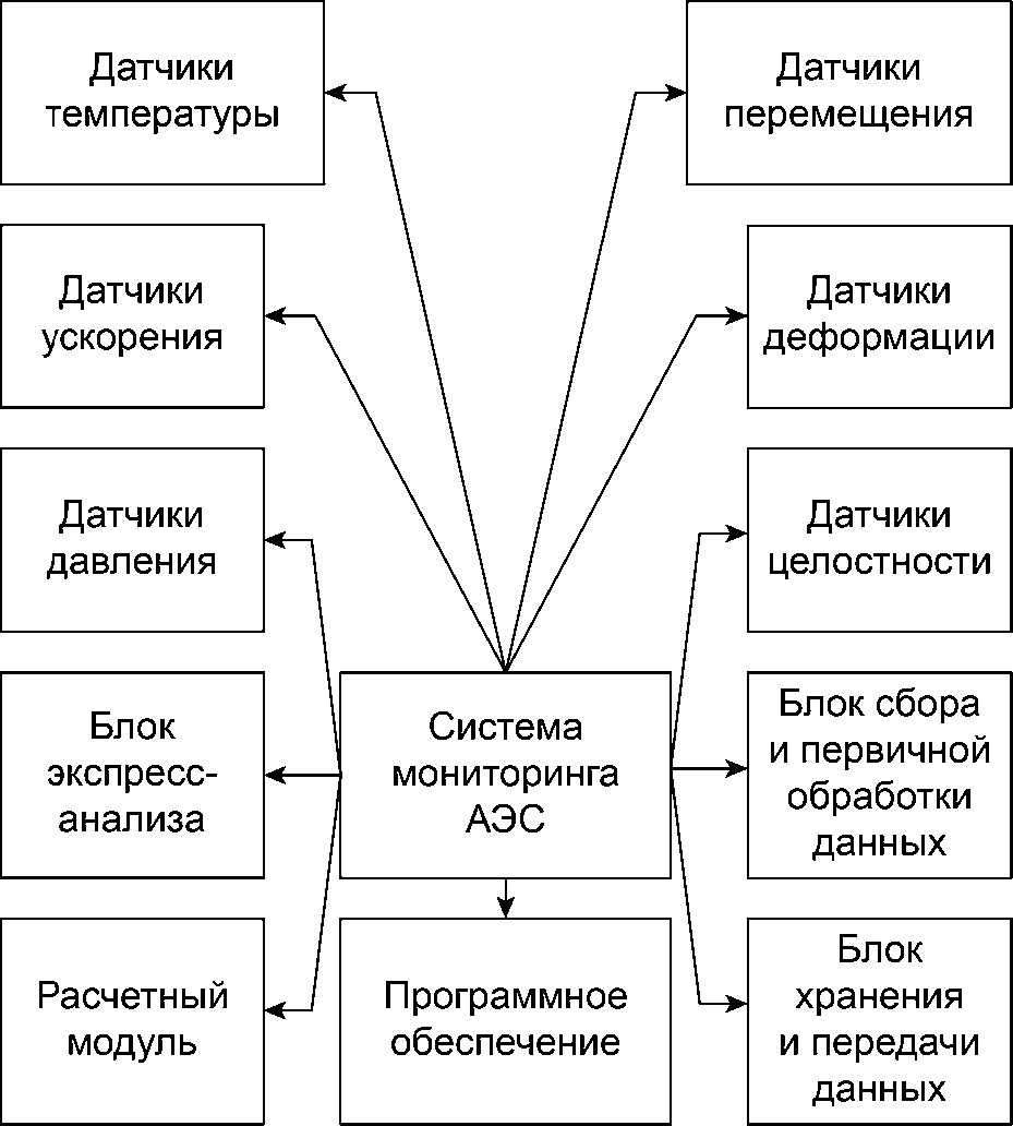 [3]. Недостатком системы является то, что она обеспечивает выполнение функций защиты и управления (нормальной эксплуатации) одновременно, что снижает надежность работы АЭС, так как выход из строя одной подсистемы может повлечь за собой наложение отказов, снизить устойчивость системы в целом. Система не позволяет выдавать текущую оценку технического состояния объекта контроля в части целостности металла.