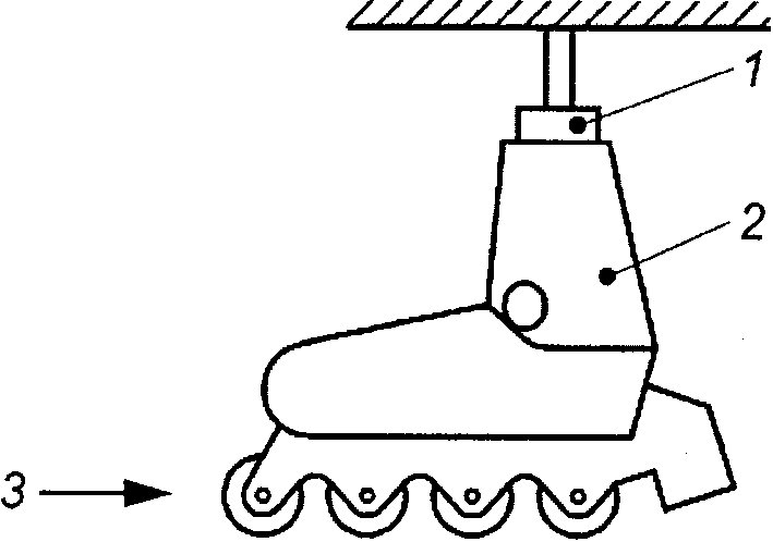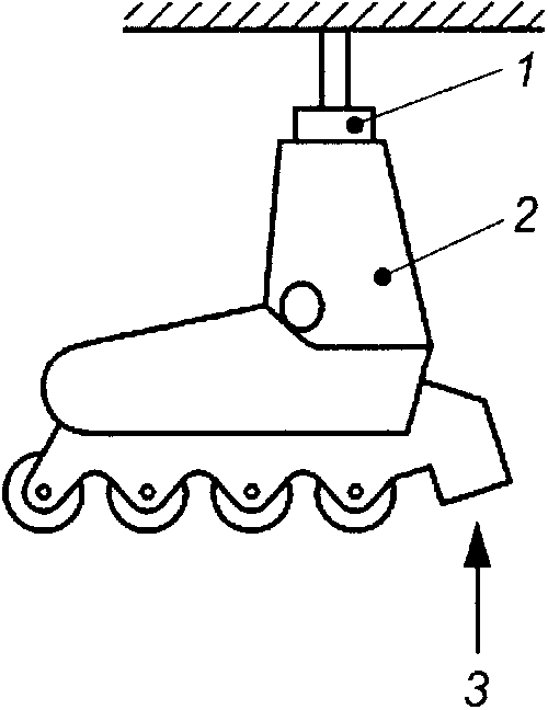 1 - колодка; 2 - роликовый конек; 3 - направление удара