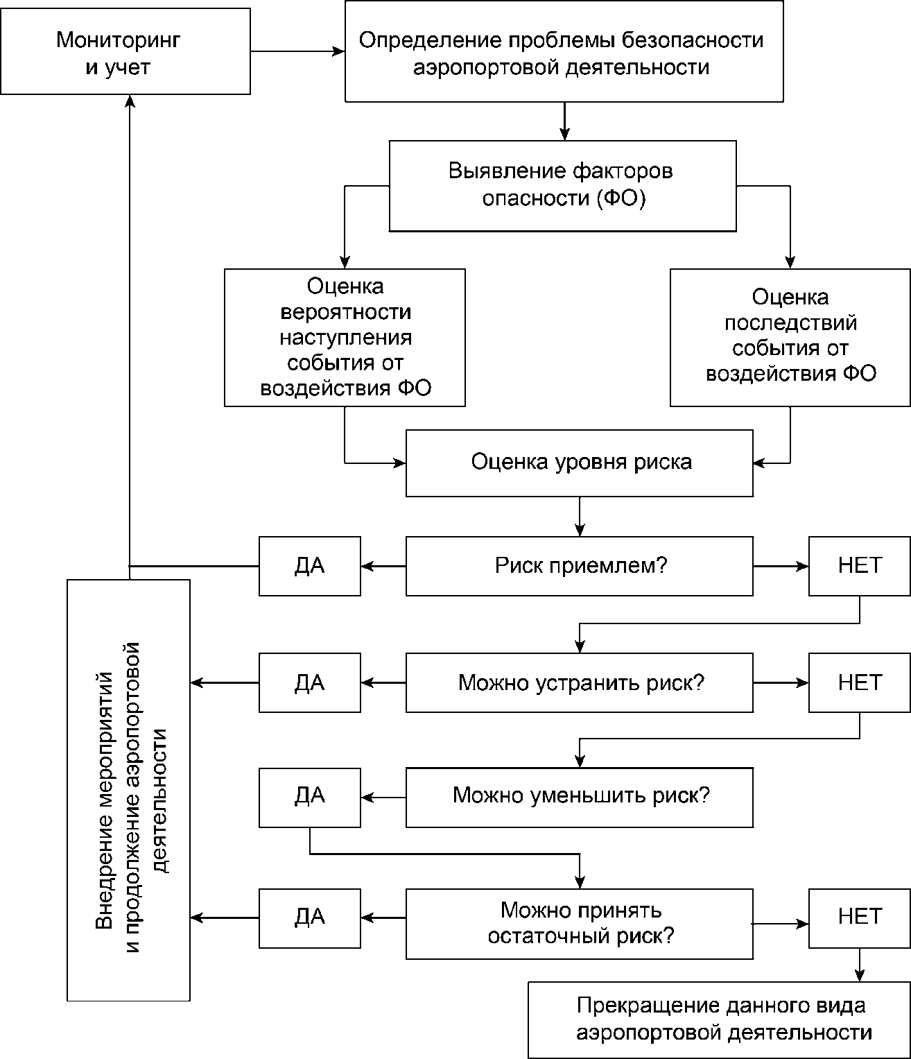 ГОСТ Р 57240-2016 "Воздушный транспорт. Менеджмент безопасности авиационной деятельности в гражданской авиации. Основные положения", управление безопасностью включает оценку и управление рисками различных видов деятельности оператора аэродрома/аэропорта и основных аспектов безопасности.
