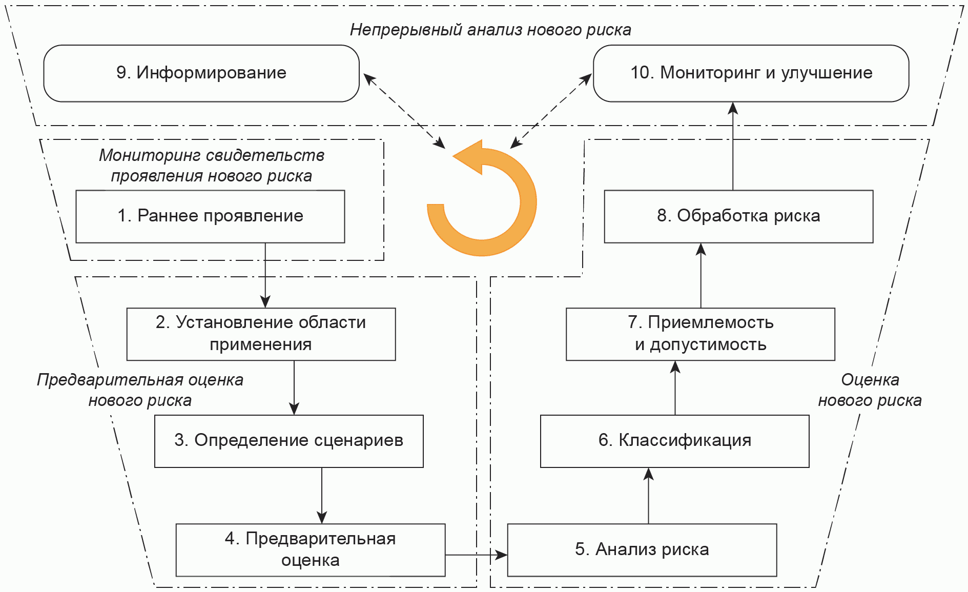 - непрерывный анализ нового риска (этапы 9 - 10).