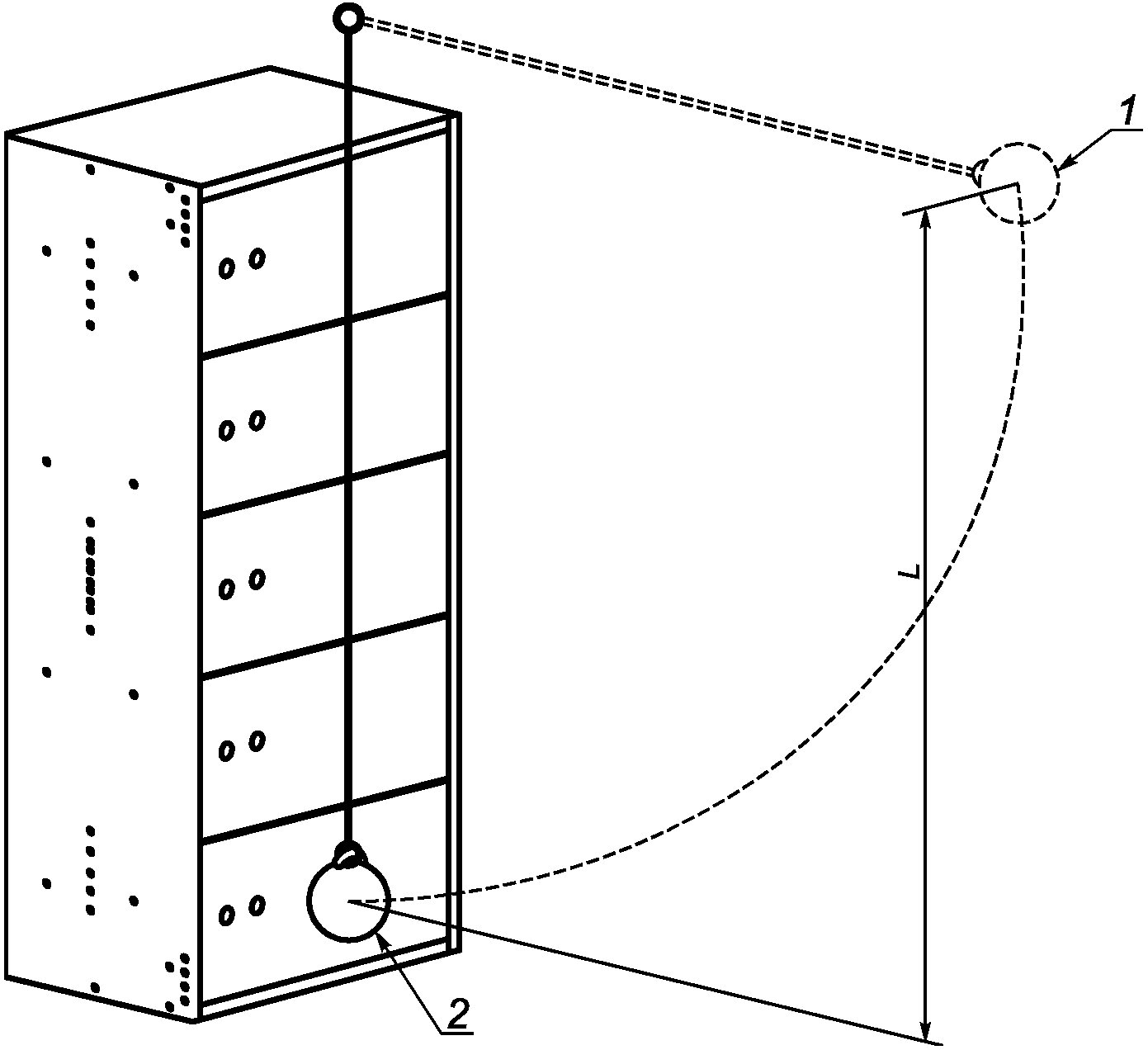 8.6.3.1 Устойчивость к выбиванию двери депозитной ячейки определяют по результатам приложения к двери ударных нагрузок, создаваемых грузом на маятнике.
