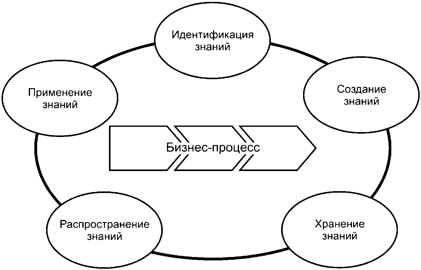 Примечание - В контексте МЗ организации могут реализовывать свои преимущества путем анализа того, насколько полноценно осуществляется поддержка данного бизнес-процесса активами знаний. Аналогично, исследование бизнес-проблем в организации, исходя из перспектив получения знаний, может приводить к повышению эффективности и результативности бизнес-процессов.