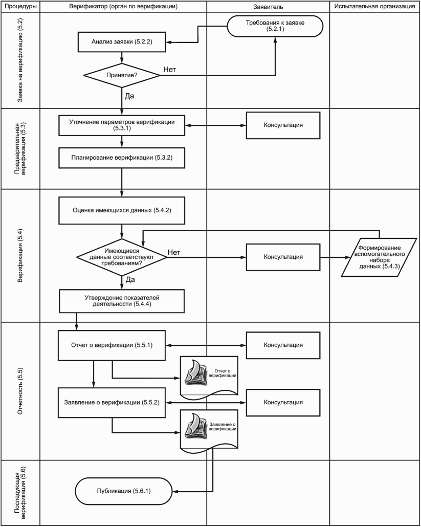 5.3 Предварительная верификация | Данный подраздел содержит информацию, необходимую органу по верификации для планирования верификации. Он определяет способы взаимодействия между заявителем и органом по верификации для обеспечения того, чтобы проверка экологической технологии была должным образом спланирована и согласована между заявителем и органом по верификации. | ||||