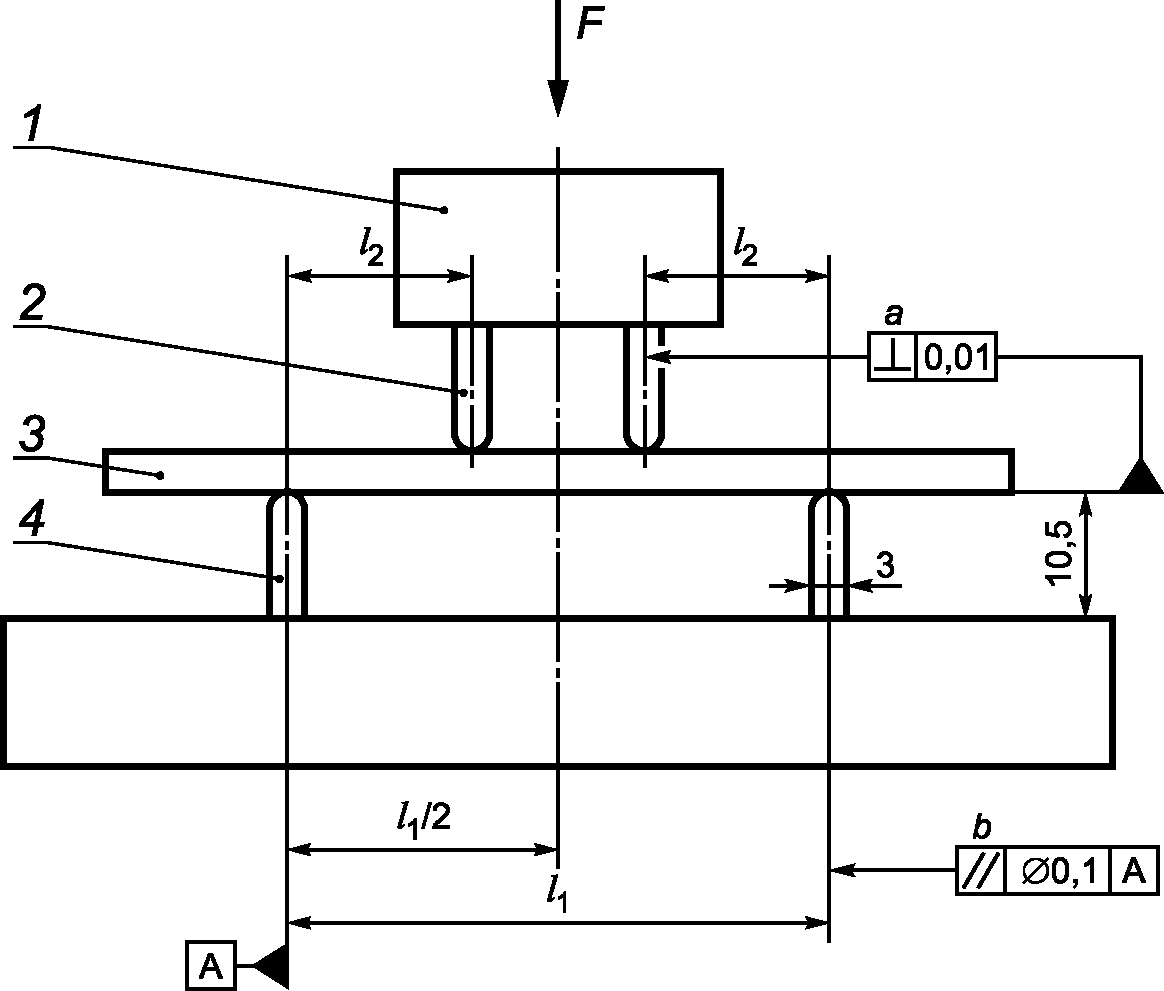 нагружающими точками, равное (60 +/- 1) мм; l2 - расстояние