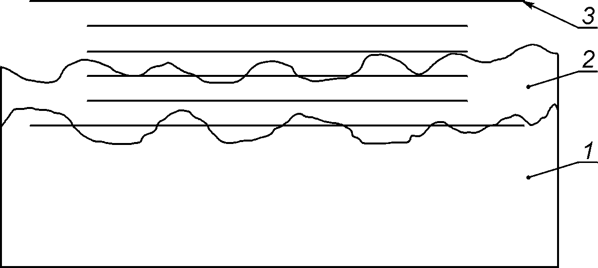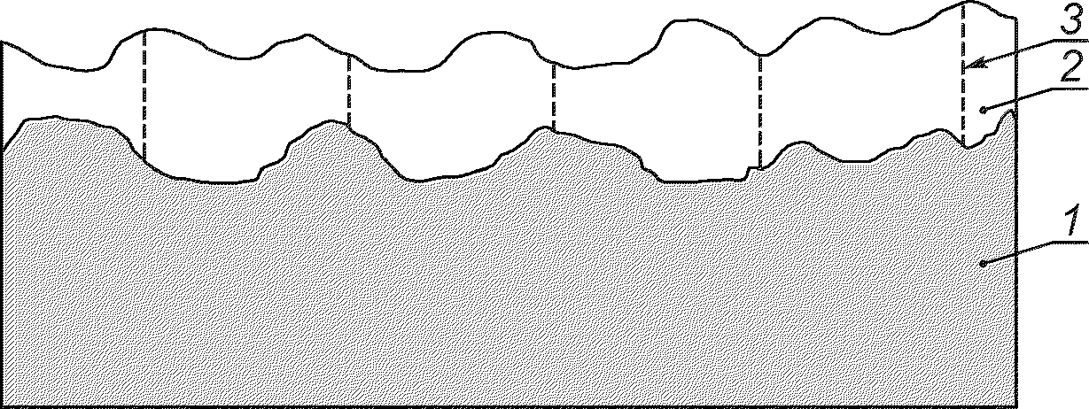 6.3.3.2. Если граница покрытие-кожа волнообразная, позиционируют крупную линию посередине между пиками и впадинами, как показано на