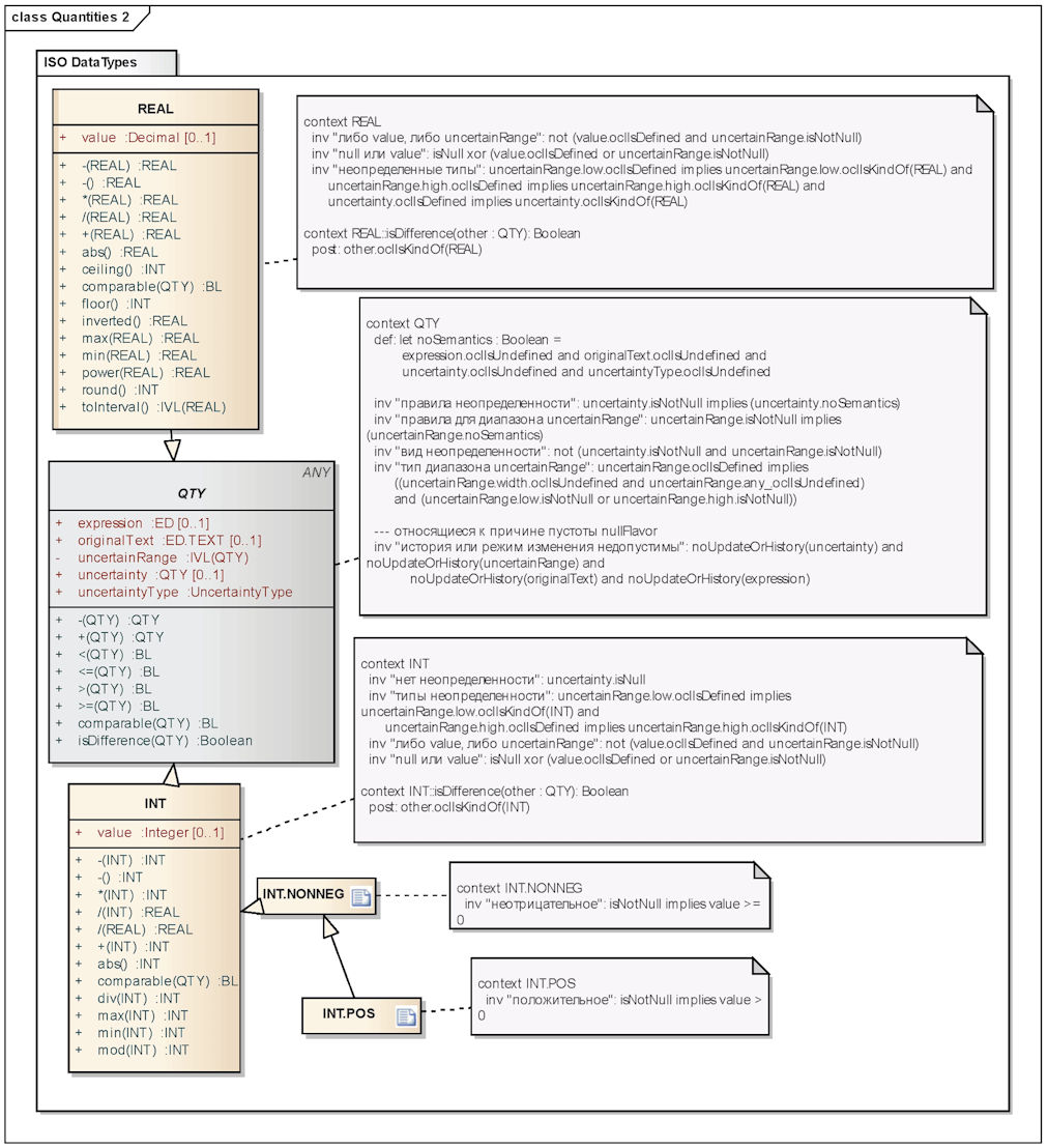 Примечание - В типе данных QTY атрибут expression унаследован от типа данных EXPR<T>, атрибуты uncertainty и uncertaintyType унаследованы от типа данных PPD<T>, а атрибут uncertainRange - от типа данных URG<T>.