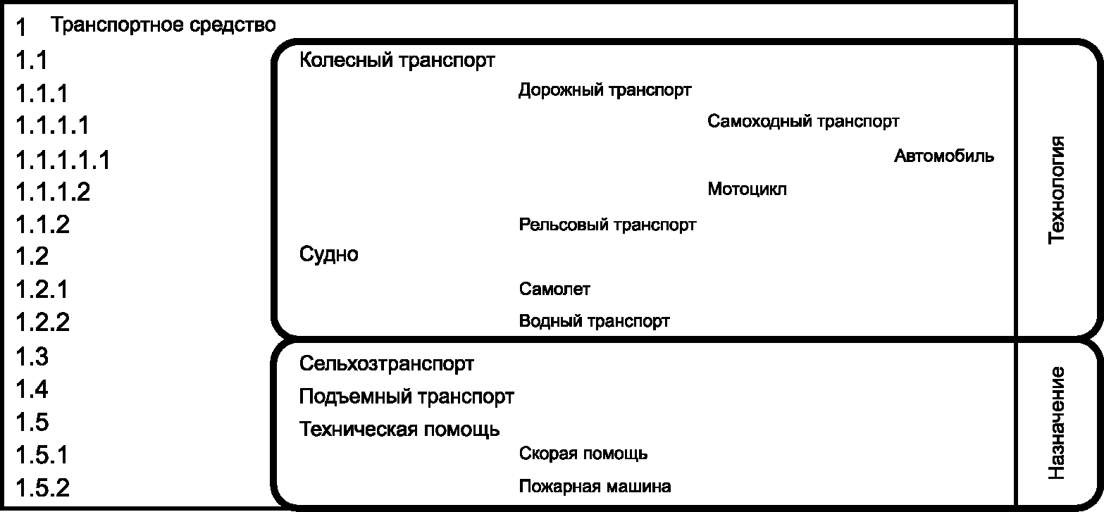 Примечание - Понятия не обязательно связываются с конкретными языками, однако подвержены влиянию социальной или культурной среды, которое часто ведет к разным принципам их классификации