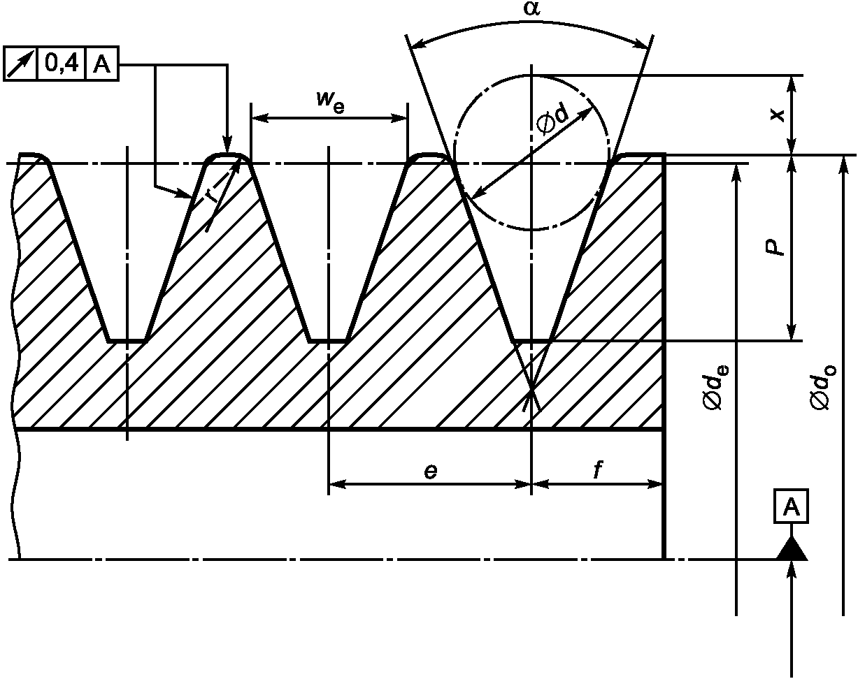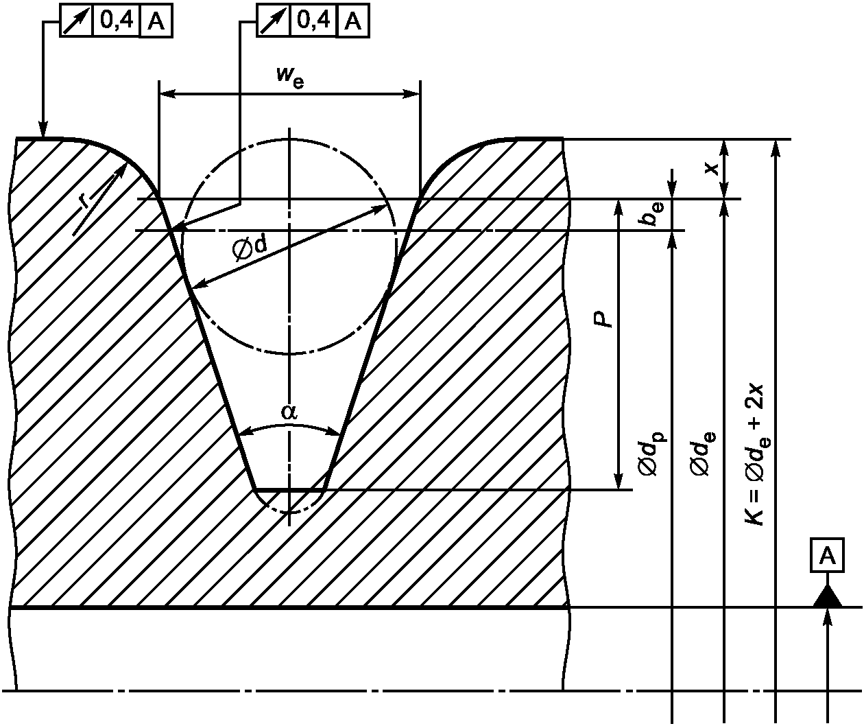 Эффективный диаметр должен быть таким, чтобы сумма de + 2x изменялась не более чем на 0,6 мм.