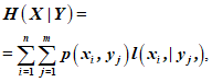 Условная энтропия, среднее количество условной информации | H(X| Y) | ![]() где p(xi, yj) - вероятность совместного проявления событий xi и yj, l(xi,|yj,) - условная собственная информация (13-31) | См. ИСО/МЭК 2382-16, статья 16.04.04 | ||