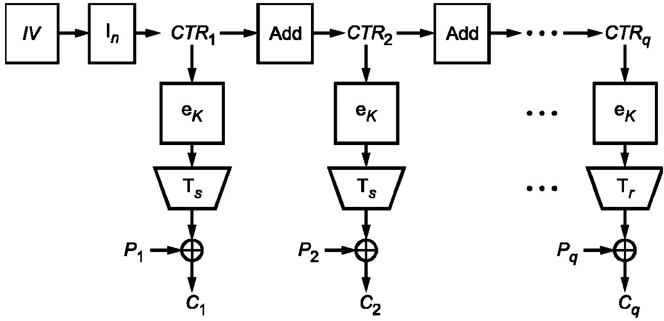 счетчик (counter): Строка бит длины, равной длине блока блочного шифра, используемая при шифровании в режиме гаммирования. [ИСО/МЭК 10116, статья 3.4] |