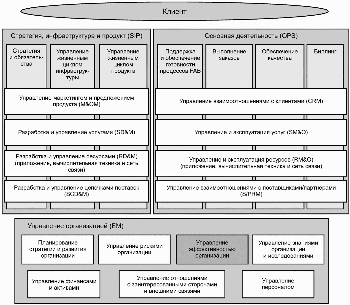 Общая структура бизнес-процессов eTOM, стандартизированная в