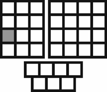 Место элемента процессов или группы процессов в структуре уровня 1 eTOM показывают путем выделения темным фоном соответствующих элементов матрицы на пиктограмме.