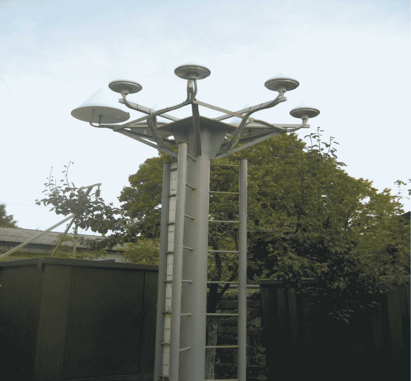 Для установки спутниковых антенн могут использоваться отдельные геодезические постаменты, которые должны устанавливаться строго вертикально. В верхнее основание постамента монтируется адаптер от антенн. Используются постаменты высотой от 3 до 6 м.
