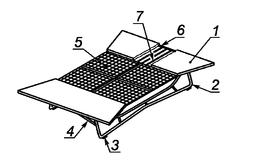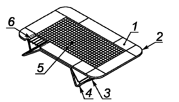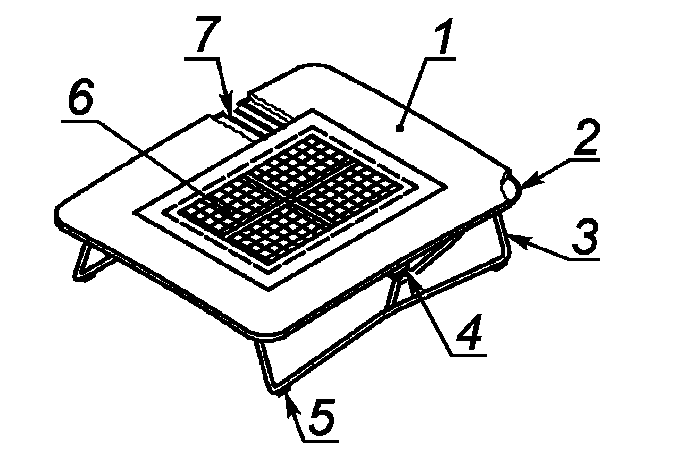 3 | Мини-батут с открытой рамой | 1 - защитная крышка рамы и натяжной части; 2 - ножка; 3 - защита от скольжения; 4 - устройство для регулировки по высоте; 5 - прыжковое полотно; 6 - натяжная рама; 7 - натяжное устройство |