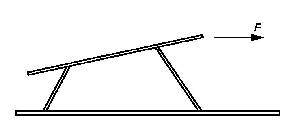 К передним углам батута прикрепляют трос. Сосредоточенную горизонтальную нагрузку F, значение которой составляет 50% собственного веса батута, прикладывают к середине троса со скоростью 10 мм/с, как показано на рисунке Б.1.
