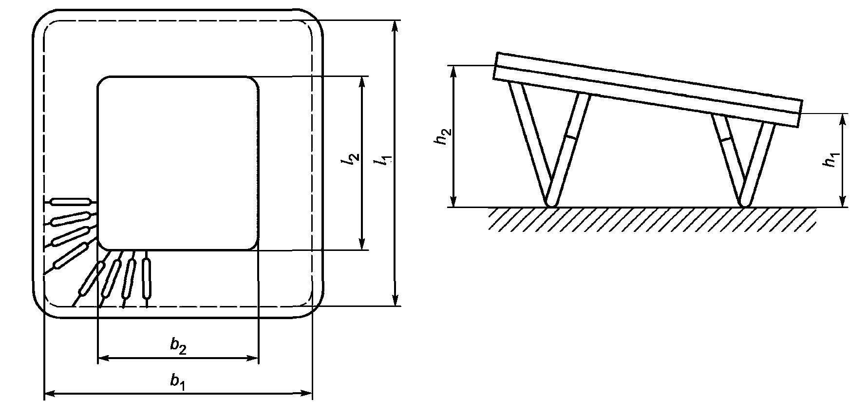 При наличии регулировки по высоте со стороны приложения нагрузки батут устанавливают на максимальную высоту, а с противоположной стороны - на минимальную высоту.