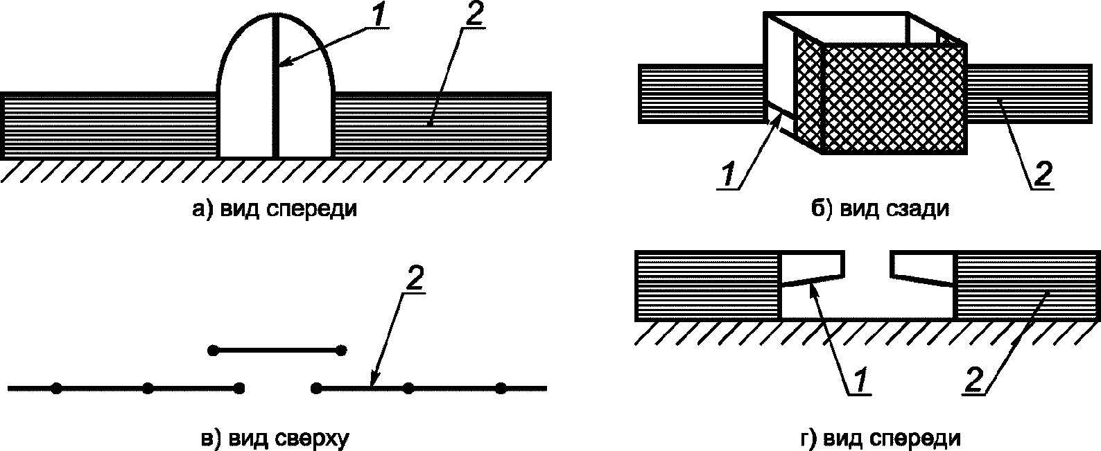 - частично замкнутых отверстиях и V-образных зазорах или щелях;