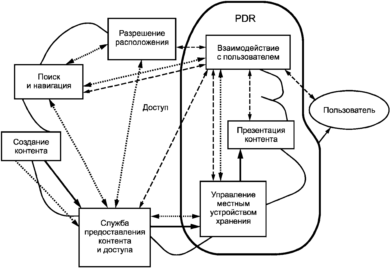 - пользователь просматривает контент прямой записи, используя свой PDR;