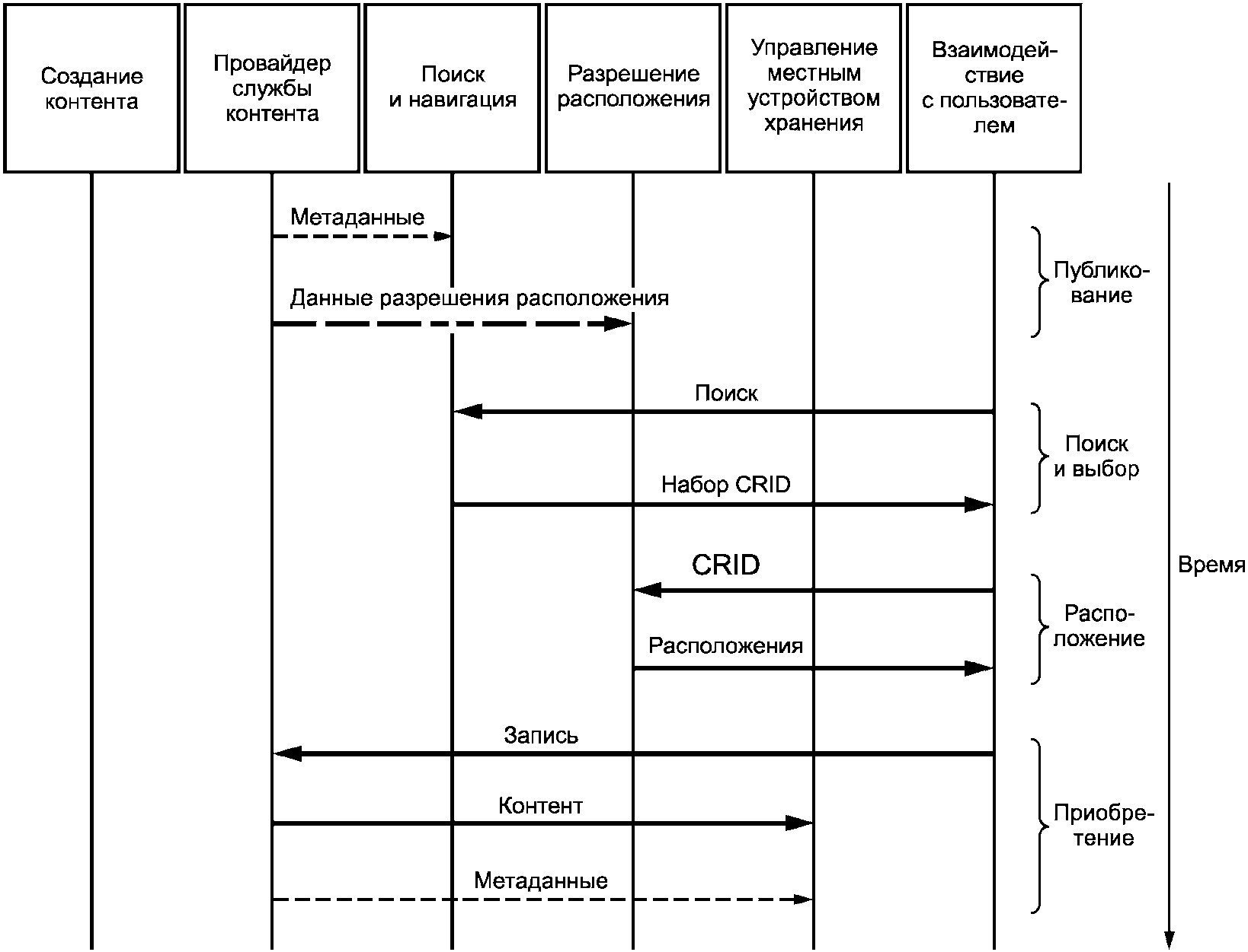 - разрешить вставку некоторых типов данных TV-Anytime (CRID для поиска контента по ссылкам, информацию RMP и метаданные) вместе с аудиовизуальным контентом. TV-Anytime должна определять синтаксис и семантику таких данных;
