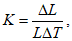 Средний коэффициент линейного термического расширения K, (°C)-1, вычисляют по формуле