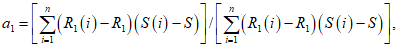10.7 Рассчитывают параметры линейной регрессии a0, a1 переменной S(i) по переменной R1(i) по формулам: