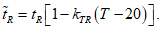 | - | значение задержки tR, приведенное к 20 °C, нс; |