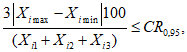CR0,95 - значение критического диапазона для уровня вероятности P = 0,95 и n результатов определений, вычисляемое по формуле