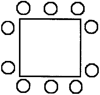 Рассадка по типу "Кабинет": квадратный стол, по периметру которого расставлены стулья |