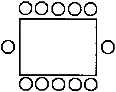 Рассадка по форме представляет букву "П": столы и стулья расставлены таким образом, чтобы все сидящие могли видеть друг друга |