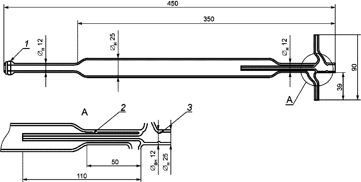 Рисунок 1 - Пример типовой кварцевой трубки для сжигания