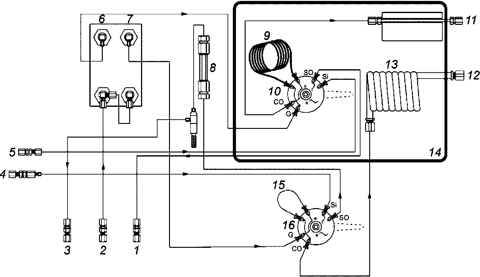 6 - газ; 7 - LPG; 8 - смотровое окошко; 9 - петлевой дозатор
