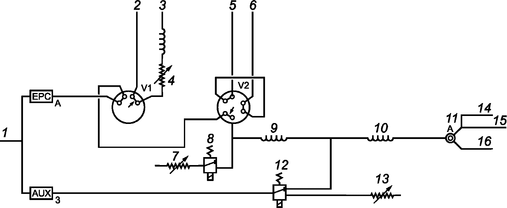 электромагнитный клапан; 14 - игольчатый клапан N 2;