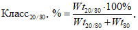 где Wt20/80 - масса класса крупности -20/+80 меш, г;