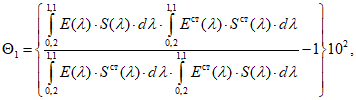 при погрешности спектральной коррекции эталонного радиометра 3% - в диапазонах УФ-A и УФ-B и 4% - в диапазоне УФ-C.