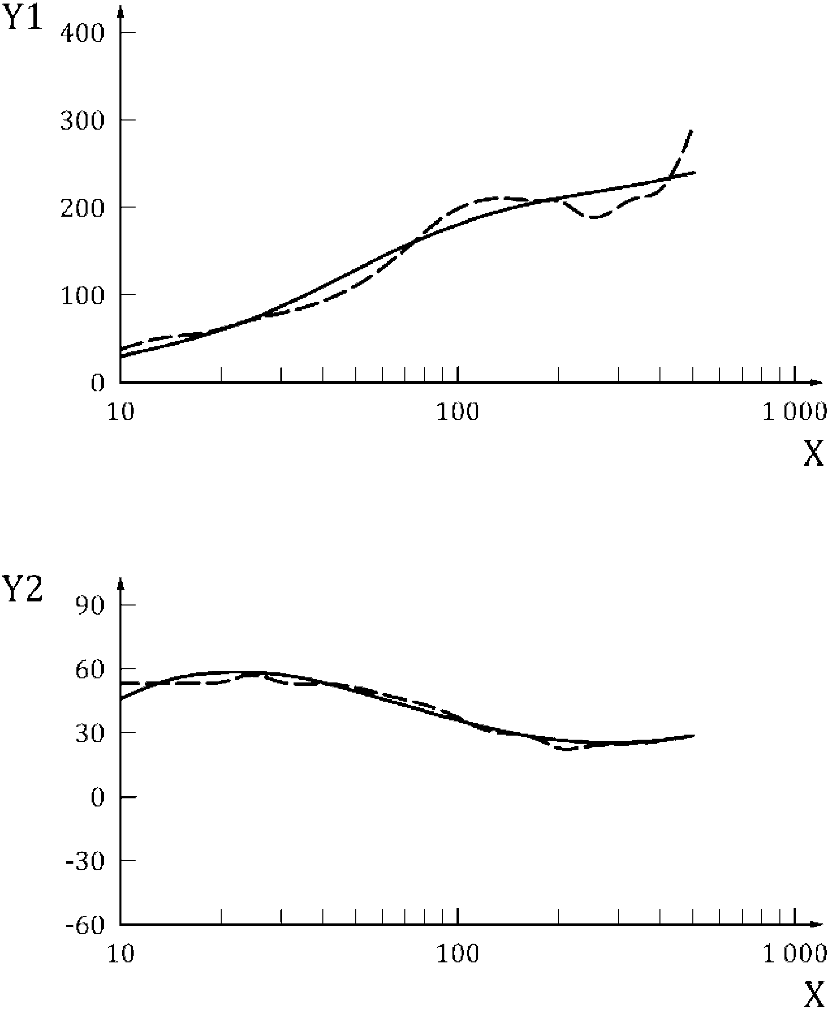 Опорные значения входного механического импеданса приведены как функции частоты при заданных значениях сил обхвата и подачи (см.