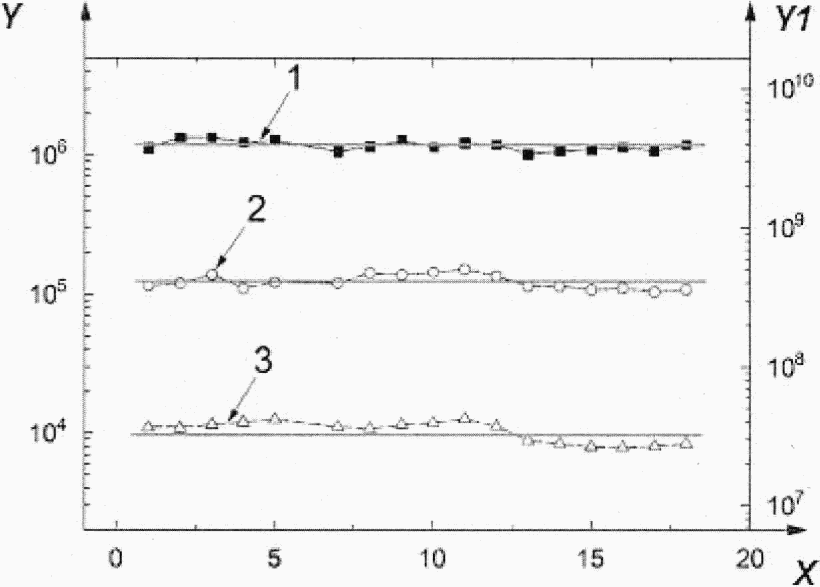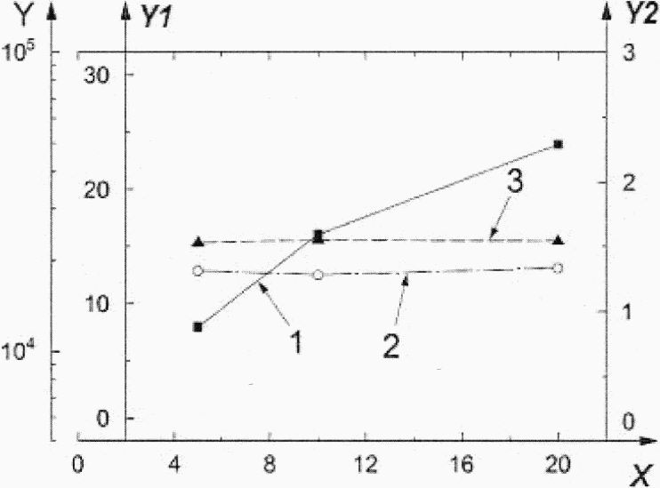 наночастиц, частиц/см3; Y1 - интенсивность образования