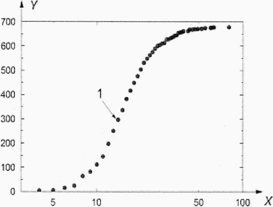 X - СМД, нм; Y - кумулятивная частота; 1 - значение СМД, 18