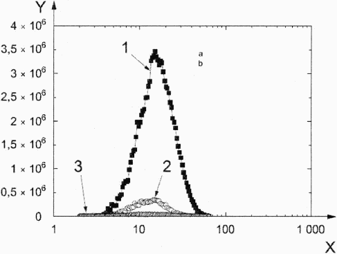 наночастиц (наночастиц/с); 1 - значения, полученные